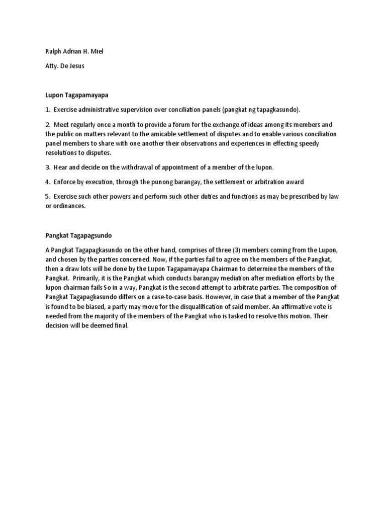 Assignment 1 Differentiate Lupon Tagapamayapa Vs Pangkat Tagapagkasundo Pdf
