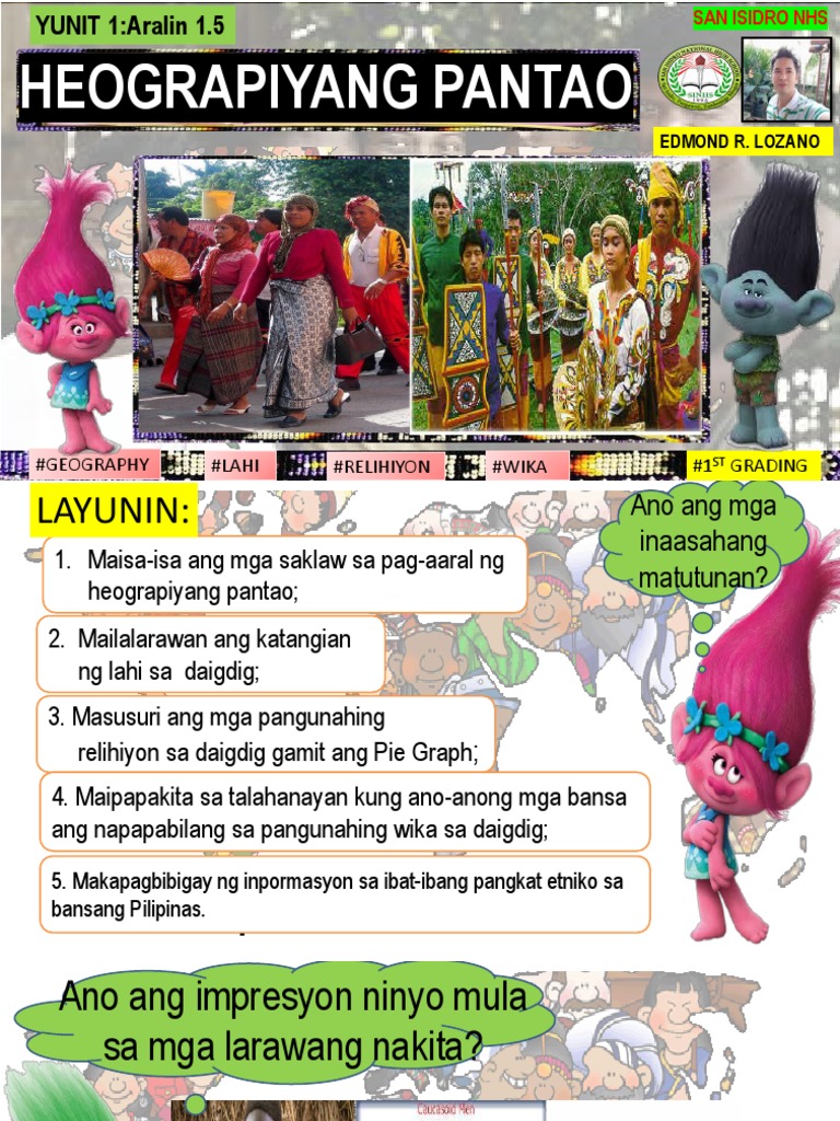Mga Lahi at Pangkat-Etniko sa Daigdig Layunin. Pangunahing pangkat etniko lahi. View AP8 U2_FD_Kristinepdf from AA 1ARALING PANLIPUNAN BAITANG 8 YUNIT 2 Heograpiyang Pantao ng Daidig TALAAN NG NILALAMAN Introduksyon Aralin 1.